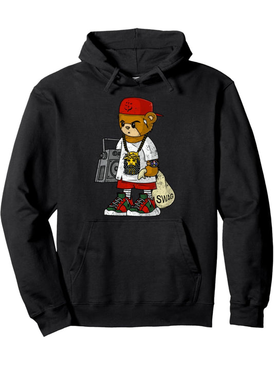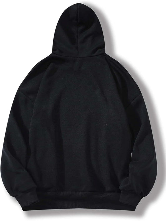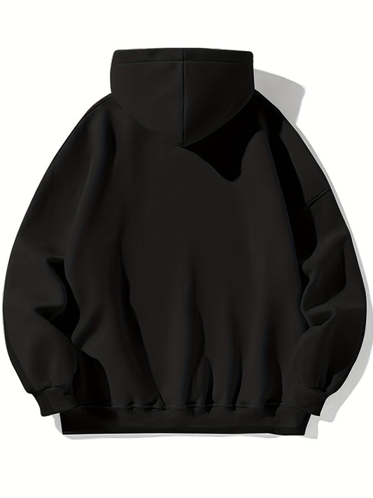 Men's Hip Hop Graphic Hoodie - Cozy Fleece-Lined Pullover with Kangaroo Pocket, Casual Streetwear for Fall & Winter, Black