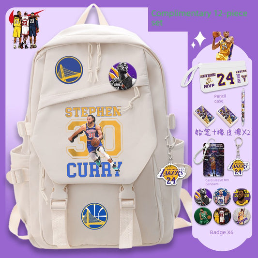 Men's Kobe-themed schoolbag suitable for high school and primary students in grades 3 to 6, featuring a Lakers James 24 NBA design with large capacity.