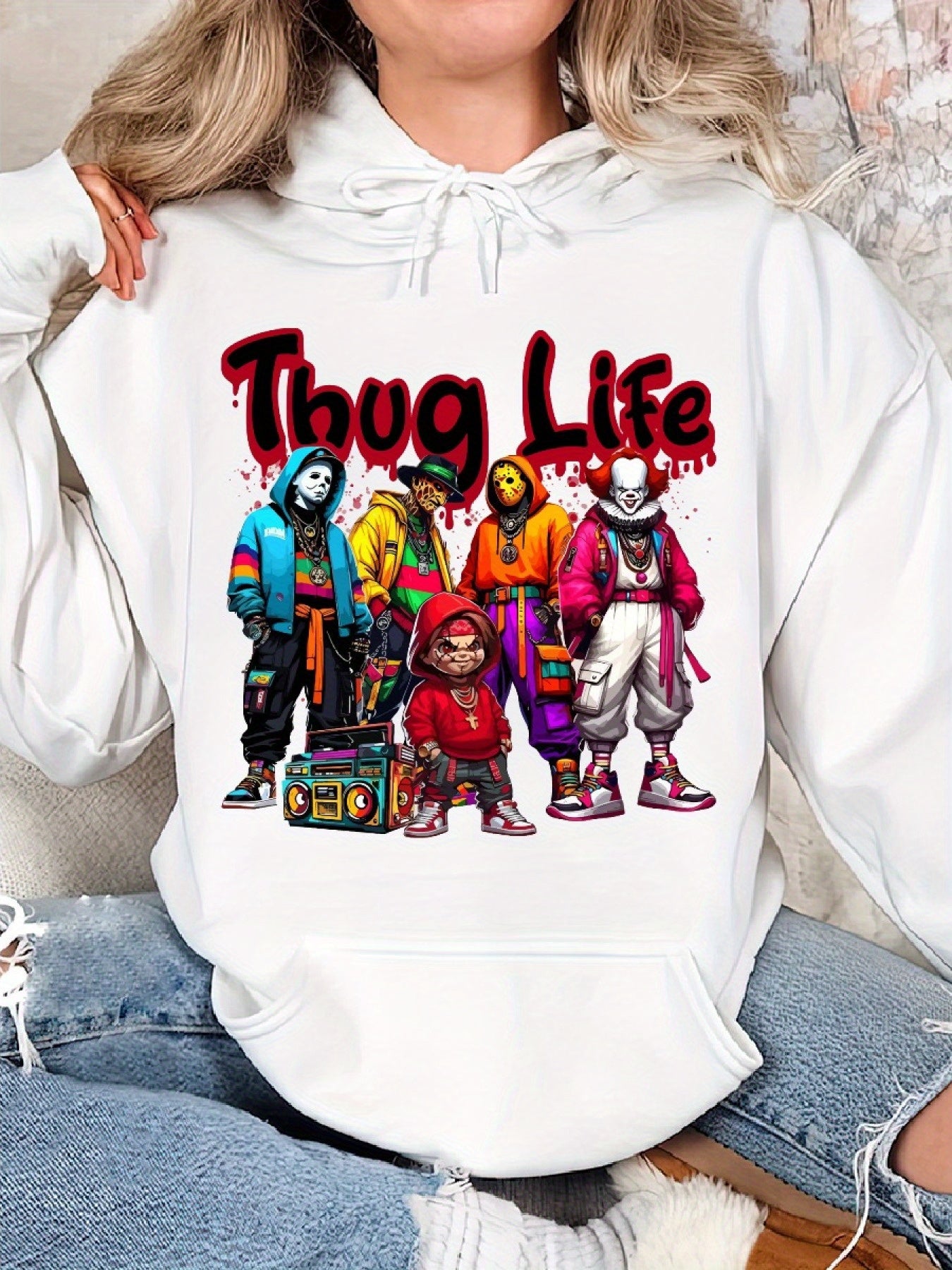 Casual Long Sleeve Thug Life Horrors Hip Hop Cozy Classic Print Pullover Hoodie for Sports