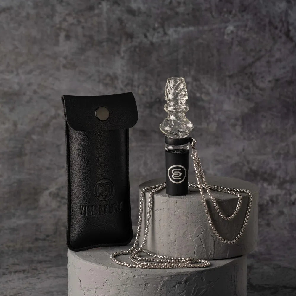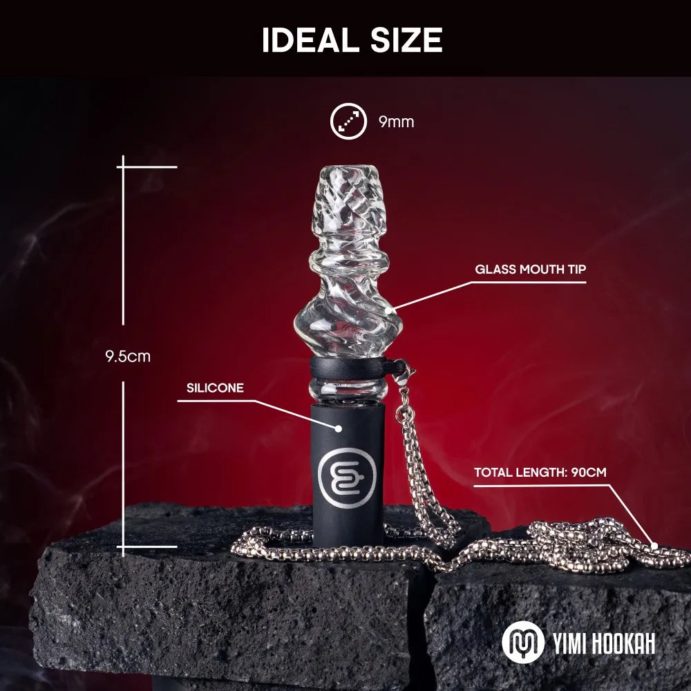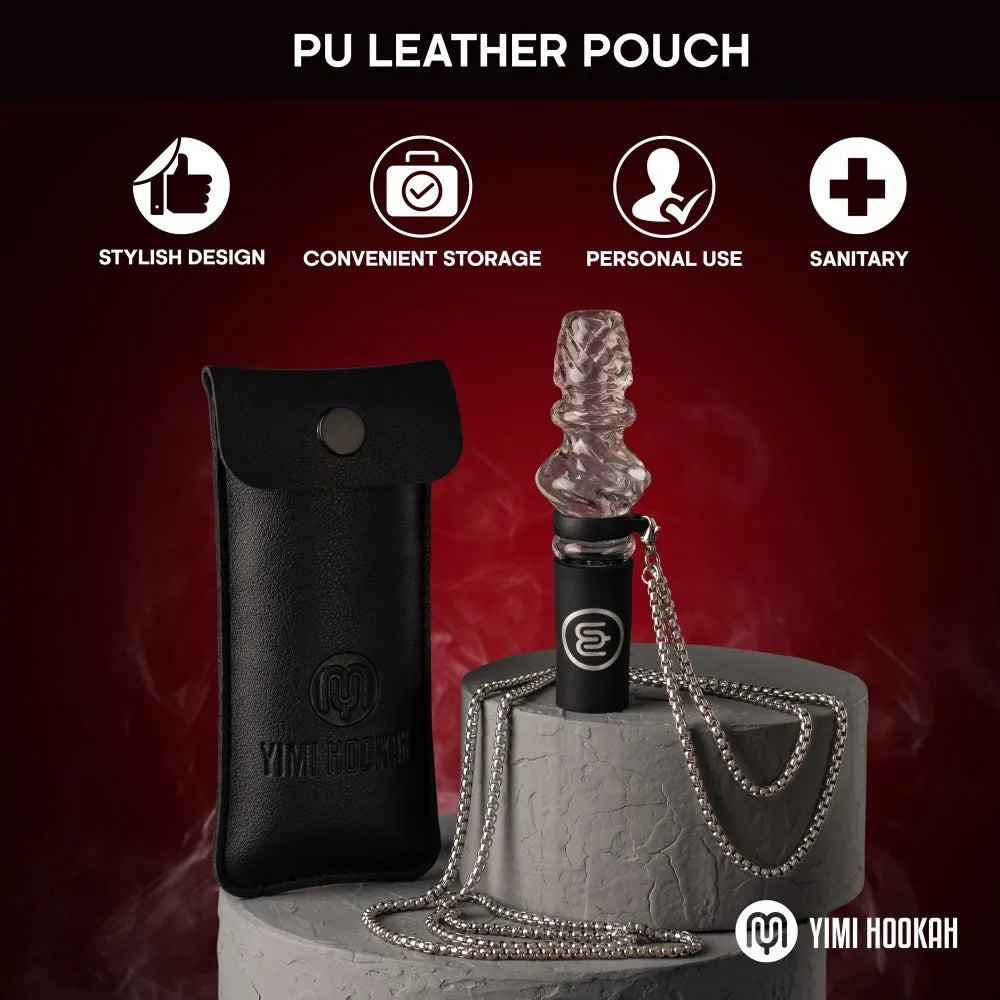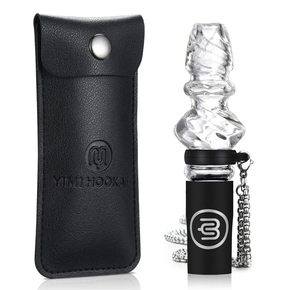 Glass Hookah Personal Sanitary Mouthpiece with 304 Stainless Steel Chain and PU Leather Pouch
