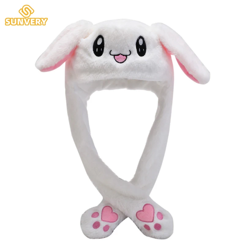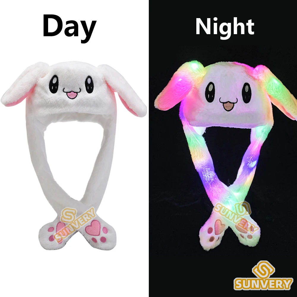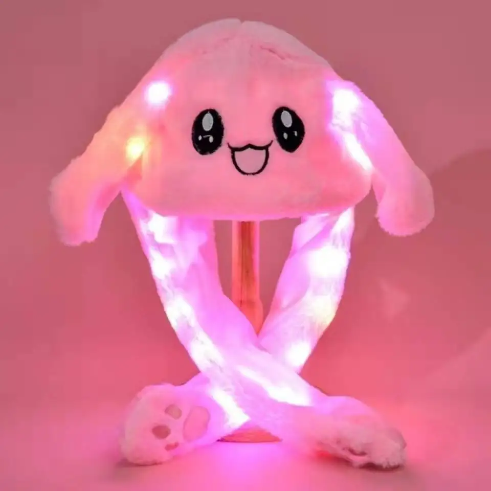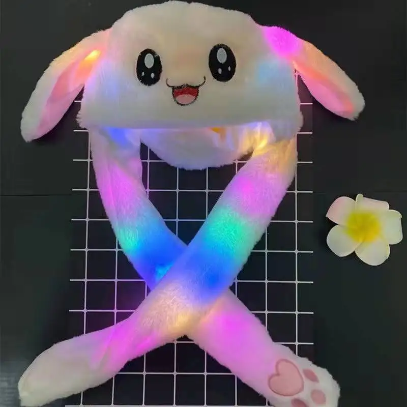 Glowing Plush Ear Moving Jumping Rabbit Hat Funny Glowing Ear Moving Bunny Hat Cosplay Christmas Party Hat 5-18 Years and Adult