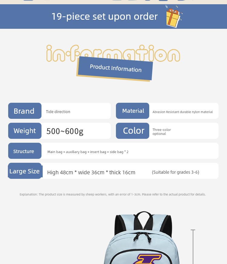 NBA Joint Name New Arrival Large Capacity Schoolbag Boys Primary School Students Kids Niche Style Kobe Star James Men's Lightweight