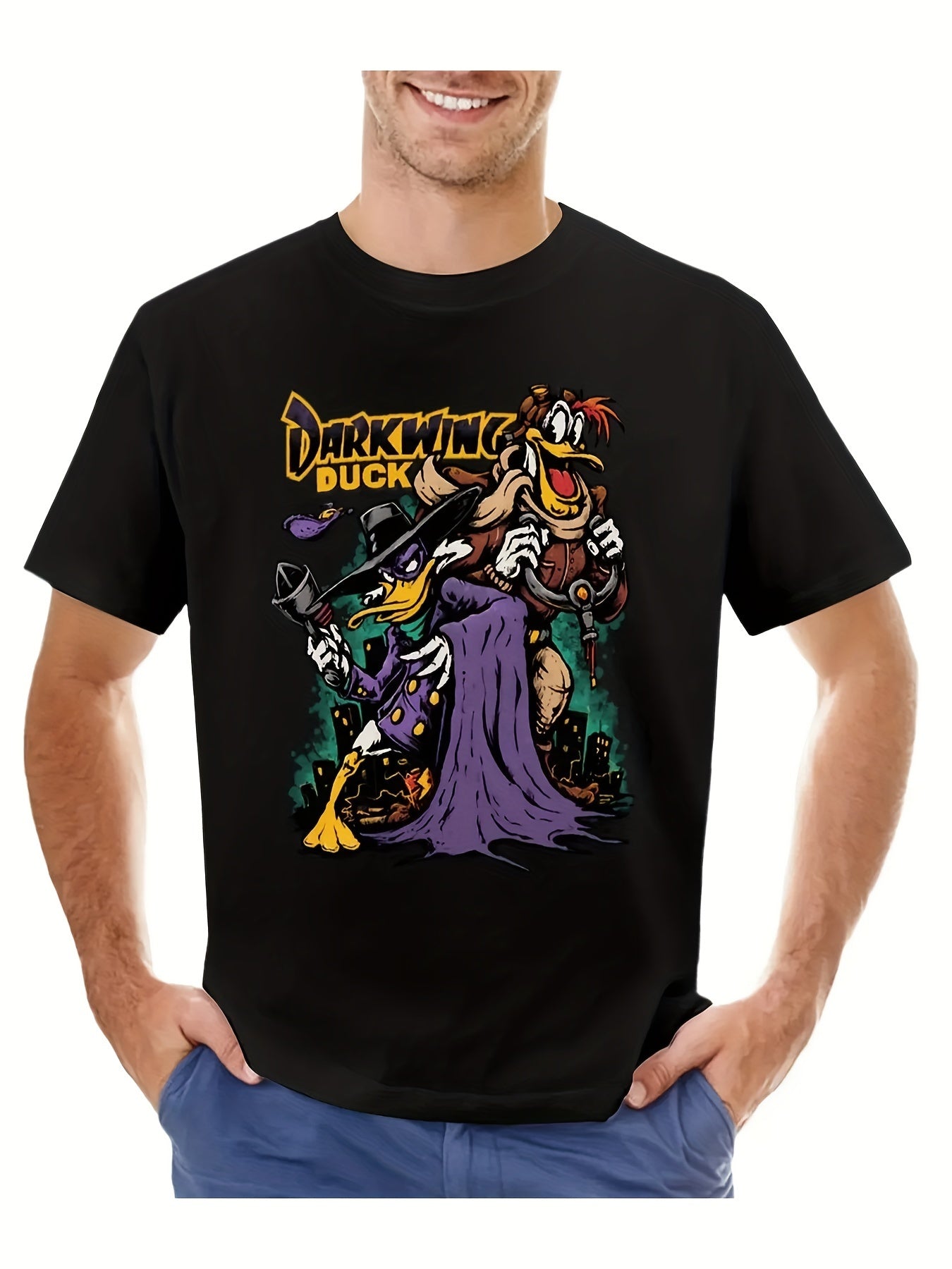 Plus Size Tops Funnys Summer Clothes Men Workout Shirt Duck Darkwing T-shirt Clothing Oversized Summer Funny Style New 220g
