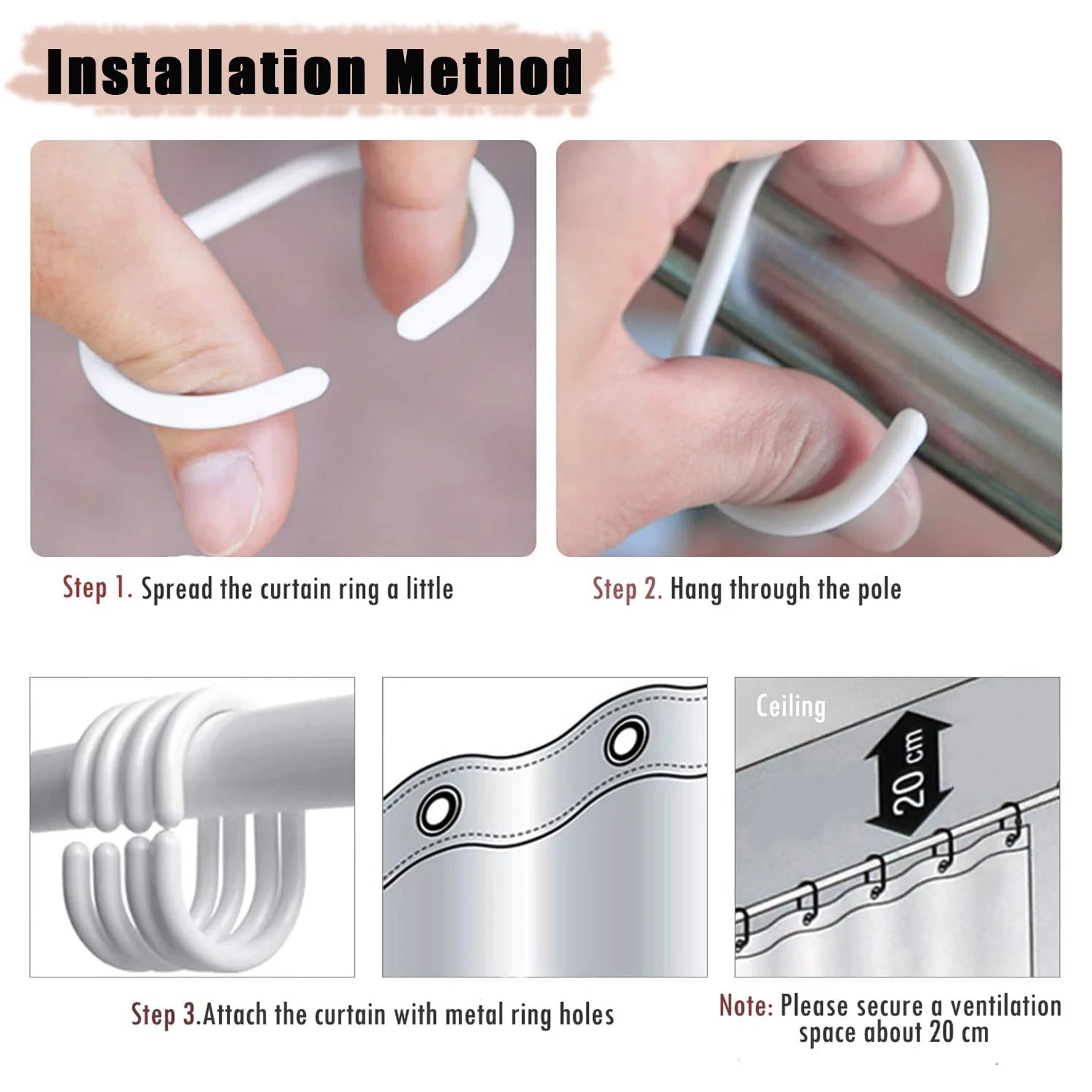 ✔Includes plastic shower curtain hooks. Easy to install and use
