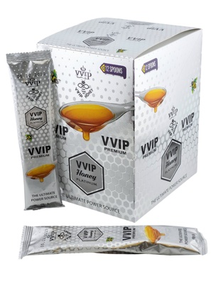 Experience the ultimate energy boost with VVIP Honey Platinum Sachets! Each sachet contains 20 grams of premium honey, carefully crafted to deliver sustained vitality and natural nourishment. The sleek gold and black packaging reflects its superior quality, while the convenient sachets ensure freshness and portability. Perfect for enhancing your daily routine, whether at work, during workouts, or on the go, this honey is a delicious and powerful way to fuel your day.